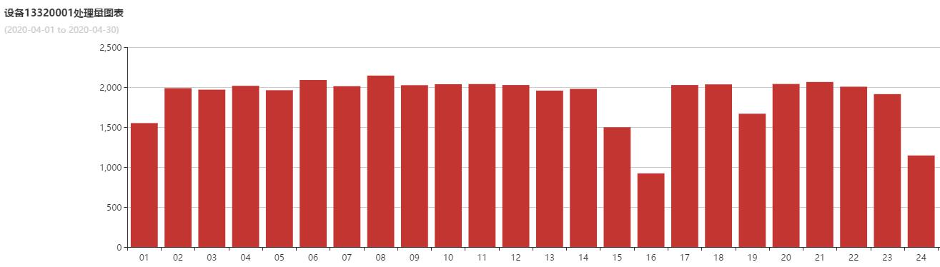 NC3000機(jī)實際日處理在2.2噸左右,從下圖4月1日到24日處理量來看,運(yùn)行正常。